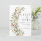 Indulge in sophistication with our refined rustic winter Christmas themed Save the Date invitations. Featuring a delicate whimsical wreath of pine tree branches, gold snowflakes and white flowers, these unique invitations elevate the anticipation for your holiday wedding. Perfect for adding a touch of elegance and charm to your special day.