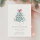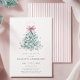 Celebrate the arrival of your little girl with this charming winter-themed baby shower invitation. Featuring a teal Christmas tree adorned with a delicate blush pink bow and surrounded by pastel snowflakes, this elegant design blends festive charm with a soft, coquette touch. Perfect for creating a memorable winter baby shower with a whimsical, yet sophisticated, feel.
