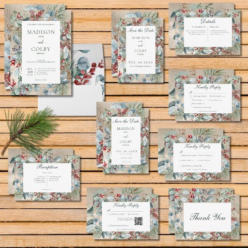Winter Christmas Greenery Gold Wedding Suite CardsDesigned by Kathe Santillo