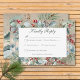 Announce your winter wedding with a touch of frosty elegance. Our enchanting wedding response card with two dinner choices features a captivating watercolor scene. Crisp pine branches and fragrant eucalyptus mingle with vibrant red rose hips and deep blue berries, all nestled amongst lush green foliage. The design shimmers against a backdrop of shimmering faux gold, reminiscent of a magical winter wonderland. Your wedding details are showcased in a crisp white text box, framed by a delicate teal outline that adds a touch of whimsy. This captivating design captures the beauty of a winter landscape, creating a truly unforgettable way to celebrate your love story. Created by Simply Farmhouse Press.