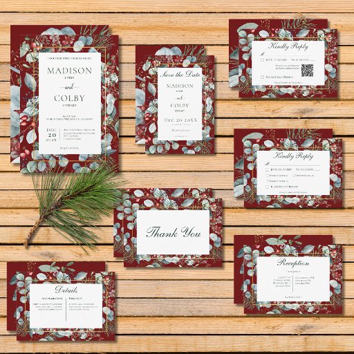 Winter Christmas Greenery on Red Wedding SuiteDesigned by Kathe Santillo
