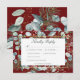 Announce your winter wedding with a touch of frosty elegance. Our enchanting dinner response card with three dinner choices features a captivating watercolor scene. Crisp pine branches and fragrant eucalyptus mingle with vibrant red rose hips and deep blue berries, all nestled amongst lush green foliage. The design stands out against a backdrop of rich holiday red. Your wedding details are showcased in a crisp white text box, framed by a delicate gold outline frame that adds a touch of whimsy. This captivating design captures the beauty of a winter landscape, creating a truly unforgettable way to celebrate your love story. Created by Simply Farmhouse Press.