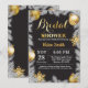 Winter Christmas Holiday Bridal Shower Invitation. Gold Snowflake. White Feather. Christmas Holiday Bridal Shower Invite. Gold and Black Background. For further customisation, please click the "Customise it" button and use our design tool to modify this template.