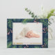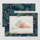 Elegantly sweet holiday birth announcements feature your favourite newborn baby photo with a border of pines and berries on Navy or any colour you choose, your baby's name, birth stats and parents names in any font and font colour. Change the navy background colour on the back and add more photos on the back, too! Pinkish background done for you in our store.