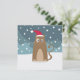 Cartoon pet cat wearing santa hat between snowflakes in winter christmas landscape, xmas kitty in snow