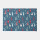Winter Christmas pattern. Stylised red, green Christmas trees, Christmas balls on a blue background.