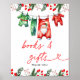 Enhance your baby shower with our Winter Christmas Santa Baby Shower Books & Gifts Poster. This festive poster features a cheerful Santa Claus surrounded by wintery details like snowflakes, holly, and lush greenery, perfectly capturing the holiday spirit. Designed to guide guests to the books and gifts table, this poster adds a charming and organised touch to your Christmas-themed celebration. Personalise it with a special message or the baby’s name to make it a unique part of your decor. For custom designs and more holiday-themed baby shower essentials, contact us or follow us for the latest updates.