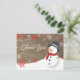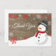 Winter Christmas Snowman Snowflake Red Thank You Card. Snowman. Burlap Background. Country Vintage Retro Barn. Red Snowflake. Love and Thanks, beautiful script font. Add your message on back or leave blank and hand write. For further customisation, please click the "Customise it" button and use our design tool to modify this template.