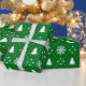 Dark green christmas wrapping paper with snowflakes and christmas trees.