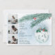 Modern minimalist casual initials photo wedding, perfect small wedding ceremony. Add your 4 of your couple photos and initials with a Winter Christmas wonderland theme, watercolor ice blue Christmas ornament and initials with green pine branches and red mistletoe berries on a blue and white snowy watercolor background.