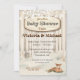 Taken from a old vintage illustration and reworked into the charming baby shower invitation, this card features, twinkle lights, snow covered trees in the winter with a baby deer or doe sleeping and a rustic wood sign. Great for a woodland, winter, Christmas or rustic baby shower.