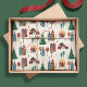 Your Christmas party in style with our modern festive Christmas cityscape in Amsterdam tissuepaper, big Christmas tree and little lights, the sun is setting, Music band is playing on the bridge over the canal in the city Amsterdam Xmas Holiday snow scene landscape illustration. Original artwork by Caroline Bonne Müller