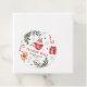 A festive winter-themed favor tag featuring a red cocoa mug with whipped cream and cinnamon, candy canes, snowflakes, pine greenery, and a holiday gift illustration. Designed in a cozy Christmas-inspired palette, this tag is perfect for winter birthday parties, holiday celebrations, and seasonal events. Customizable with a short thank-you message for guests.