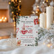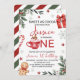 A festive winter-themed first birthday invitation featuring cocoa elements, candy canes, snowflakes, pine greenery, and a red gift box. Designed with warm seasonal colors and elegant typography, this layout is perfect for a cozy holiday celebration. Ideal for girls’ first birthdays, winter parties, and themed events with a sweet cocoa-inspired motif. Fully customizable for names, date, venue, and RSVP details.