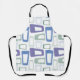 This apron has a mid-century modern design of repeating parallelograms in blues and greens with white parallelograms on top. Like this design but want different colours? Message me.