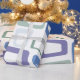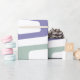 This wrapping paper has a mid-century modern design of repeating parallelograms in blues and greens with white parallelograms on top. Like this design but want different colours? Message me.
