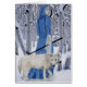 A winter witch makes her way through the forest with her wolf companion. They seem to have spotted you.