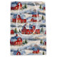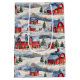 A beautiful winter pattern featuring a country winter scene with red snow covered barns.