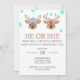 Celebrate the upcoming arrival of your little one with this charming winter-themed gender reveal invitation. Featuring two adorable deer characters, a boy with a blue beanie and a girl with a pink bow, this festive design playfully asks “He or She, What Will Our Little Deer Be?” Snowflakes add a seasonal touch, making it perfect for a winter celebration. The invitation includes customisable event details such as date, time, location, and RSVP information. Ideal for parents looking to share this exciting moment with family and friends in a stylish and memorable way.