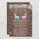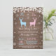 Winter Deer Gender Reveal Invitation. White Snowflake. He or She. Boy or Girl. Pink and Blue. Christmas Holiday Gingerbread Man. Rustic Wood Background. Country Vintage Retro Barn. For further customisation, please click the "Customise it" button and use our design tool to modify this template.