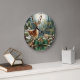 This enchanting clock features a beautiful brown deer standing in a snowy winter forest under the glow of a full moon, surrounded by pine boughs and berries. The text "Happy Holidays" is scripted in sparkling gold glitter, while the bottom is anchored by a large, ornate green bow and pinecones. The design may look real due to the high detail and three-dimensional texture in the artwork.