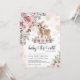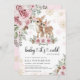 Winter Deer Pink Gold Roses Girl Baby Shower Invitation