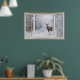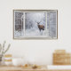The artwork creates the illusion of having an open bay window looking out at a male deer on a snowy winter's day.