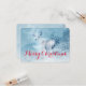 A Merry Christmas card with an image of a majestic deer in wintertime. An icy blue filtered background gives this photo a cold winter look with a magical feel. A noble deer stands on a hill with wintery pine trees in the background