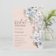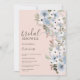 Let's celebrate the bride to be with this pretty hand painted winter wonderland theme bridal shower invitation. Featuring beautiful white anemones, peonies, and dusty blue flowers, with dark green eucalyptus branches with white snow on editable pastel blush pink background and an elegant and modern brush script font. Perfect for autumn winter, Christmas weddings.