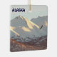A bald eagle along the snow-covered Chugach Range near Anchorage, AK. Customisable text reading "ALASKA" also appears.