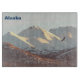 On the winter solstice a bald eagle flies near the snow-covered Chugach mountain rangeange in Alaska. Snow on the mountains glows from the low angle of the sun. Text reading "Alaska" also appears.