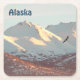 A bald eagle (Haliaeetus leucocephalus) flies in front of the snow-covered Chugach Range near Anchorage, AK. Customisable text reading, "Alaska" also appears.