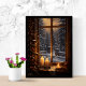 In this enchanting depiction, a quaint window framed by frosted panes takes centre stage, emanating a soft, inviting light that spills out into the wintry landscape. Outside, snowflakes gently fall from the sky, blanketing the ground in a layer of pristine white. The scene exudes a sense of peace and serenity, offering a moment of quiet reflection and contemplation amidst the hustle and bustle of the holiday season.