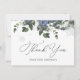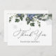 Thank you card featuring winter blue florals, snowflakes and evergreen. Personalise with your information or click "Click to customise further" to edit font styles, size and colours. Adjust the text for a bridal shower or other event.