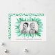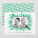 Winter evergreen foliage watercolor green Christmas photo template card. Personalise with your own family name and your photo. Original watercolor art by Sarah Trett.