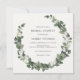 Trendy, square wedding shower invitation framed by watercolor wreath foliage of holly, evergreens and winter florals. Customise with your information for your shower day. Click "click to customise further" to change the font style, size, colour or background colour.