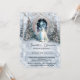 A beautiful and magical forest scene with fir trees covered in snow forming a pathway leading up to a magical, glowing portal. An angelic princess is standing in front of the portal staring in. She is wearing a flowing white regal ballgown and is preparing to enter the magical Realm. The graphics are placed on a pale dusky blue background infused with white snowflakes and ethereal whimsy. This downloadable and printable invite is ideal for a 15th birthday milestone or any fairytale birthday or wedding as the templates may be personalised to suit your requirements.