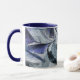 Winter Fallen Leaves in Blue & Grey Mug - This unique mug design features a stunning photo-art creation of frosty fallen leaves, transformed into a breathtaking work of art. The original photograph was digitally enhanced to emphasize the serene beauty of winter's chill, with a soothing palette of blues and greys. Perfect for nature enthusiasts and those who appreciate the quiet beauty of the season.
