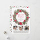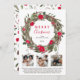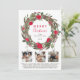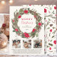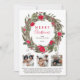 Winter festive wreath Christmas 3 family photos featuring elegant winter festive hand painted green pine branches, red flowers, and holy berries, with white cream blooms and lush greenery leaves in a wreath with an elegant script font typography. Add your family xmas message with a cute winter pattern at the back.
