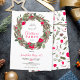 Winter festive wreath Christmas corporate party featuring elegant winter festive hand painted green pine branches, red flowers, and holy berries, with white cream blooms and lsuh greenery leaves in a wreath with an elegant script font typography.