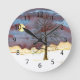 A watercolor painting of a bare sycamore tree and full moon adorns this clock!