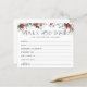 The Winter Floral Advice and Wishes Bridal Shower Card captures the romance and beauty of a winter wonderland with a touch of festive charm. The design features a watercolor illustration of evergreen branches dusted with snow, creating a soft, enchanting backdrop for a celebration. Red florals and berries are interwoven with the greenery, giving the design a seasonal, yet elegant, winter feel. The modern, unique script adds a personal and contemporary touch, with flowing letters that evoke a sense of warmth and joy amidst the snowy landscape. The contrast of deep greens and bright reds enhances the festive mood, making this item perfect for a winter bridal shower. Matching items available.