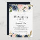 This winter floral calligraphy housewarming party invitation is perfect for a family and friends new home get together celebration. The design features beautiful hand-painted dark blue, blue, navy, pink , blush, gold flowers and green foliage, bunched into elegant bouquets.