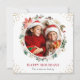 Winter Floral Gold Confetti 2 Photo Square Happy Holiday Card