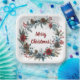 An elegant winter wreath design with Christmas flowers, pine cones and winter berries on a fir branch.