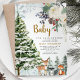 Red Woodland Winter Floral Baby Shower Forest Animals Invitation