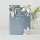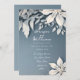 Winter floral snowy white and icy blue wedding invitation