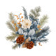 Floral composition in watercolor style white flower pine branches leaves and blue berries