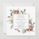 Trendy, square wedding invitation framed by watercolor foliage of holly, evergreens, poinsettias and winter florals. Perfect for a winter or holiday wedding. Customise with your information for your wedding day. Click "click to customise further" to change the font style, size, colour or background colour.