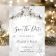 Invite guests to celebrate your special day with this enchanting rustic winter wedding invitation, featuring a timeless design of pine cones, and winter flowers. A beautifully designed save-the-date card that can be customized with your name. Select the "customize" button to change the font style, color, and size.